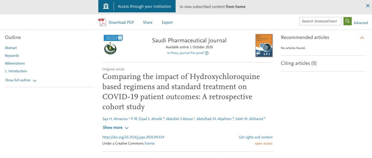 Source: MedRxiv. Full Study in PDF here Xabier Garcia-Albeniz, Julia Del Amo, Rosa Polo, Jose Miguel Morales Asencio, Miguel A HernanmedRxiv 2020.09.29.20203869; doi: https://doi.org/10.1101/2020.09.29.20203869 Abstract Background: There is disagreement about whether hydroxychloroquine (HCQ) is effective as prophylaxis for COVID-19. We conducted a meta-analysis of randomized trials that study the effectiveness of HCQ to prevent COVID-19. Methods and Findings: A search of PubMed, Embase, medRxiv, and clinicaltrials.gov found […]