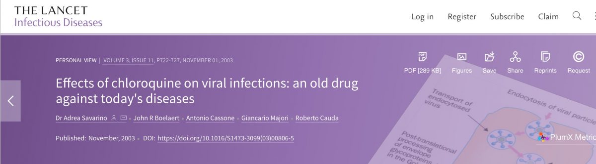 Source: NIH Savarino A, Boelaert JR, Cassone A, Majori G, Cauda R. Effects of chloroquine on viral infections: an old drug against today’s diseases?. Lancet Infect Dis. 2003;3(11):722‐727. doi:10.1016/s1473-3099(03)00806-5 Abstract Chloroquine is a 9-aminoquinoline known since 1934. Apart from its well-known antimalarial effects, the drug has interesting biochemical properties that might be applied against some viral […]